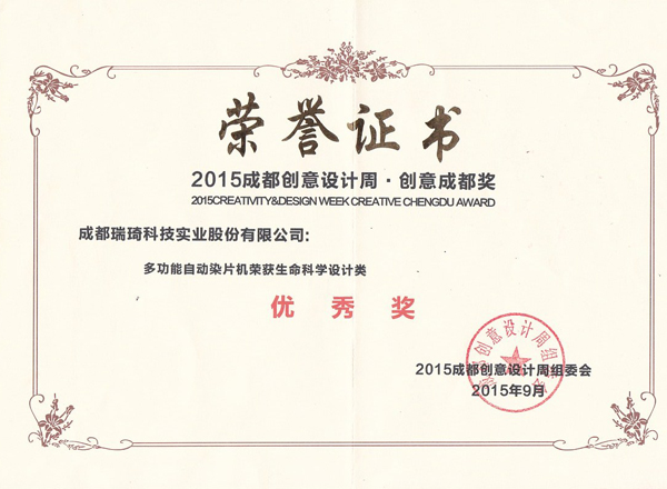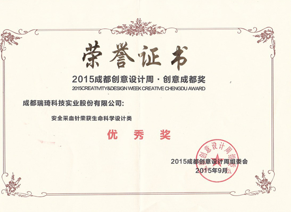 2015年9月19日,“2015成都創意設計周”在成都新會展中心拉開帷幕,此次以“工業設計驅動 城市創新發展”為主題,一場場創意設計盛宴將讓成都市民享受了一道道風味獨特的文化創意饕餮大餐。其中,我司產品——自動染片機、安全采血針榮獲“成都創意設計周”大賽優秀獎。