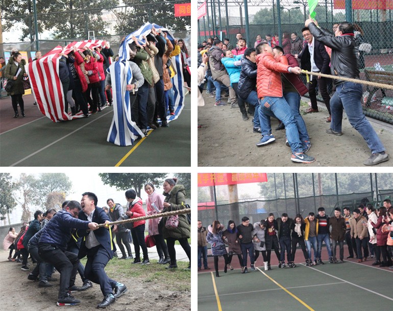 此次活動均為團(tuán)體賽,共6個(gè)團(tuán)隊(duì),10個(gè)項(xiàng)目,分別為:跳繩接力往返賽、滾鐵環(huán)往返接力賽、心相印背夾球往返賽、珠行萬里、袋鼠跳、無敵風(fēng)火輪、摸石過河、齊頭并進(jìn)、巨人腳步、拔河比賽。所有比賽項(xiàng)目的設(shè)計(jì)充分體現(xiàn)了合作性、競技性和趣味性,展現(xiàn)出團(tuán)隊(duì)精神、團(tuán)隊(duì)力量、團(tuán)隊(duì)協(xié)作、團(tuán)隊(duì)溝通能力。